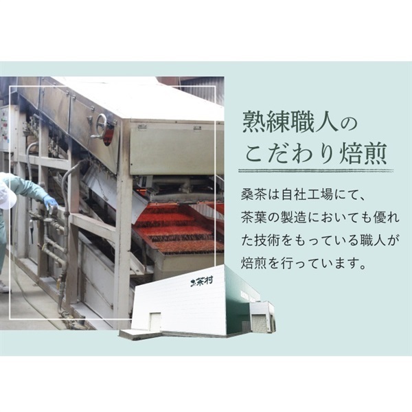 ビタミンやミネラル、食物繊維が豊富な桑を、お茶村の職人が美味しい「桑茶」に作りあげました。糖や脂肪、お通じやダイエットが気になる方にオススメです。