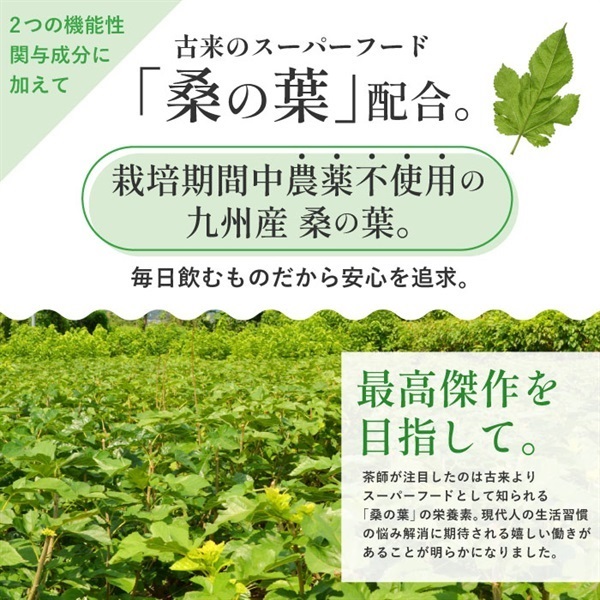 桑と緑茶抽出物のみを配合した機能性表示食品です。
