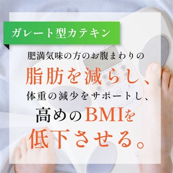 ◆ガレート型カテキンには、肥満気味の方のお腹まわりの脂肪を減らし、体重の減少をサポートし、高めのBMIを低下させる機能が報告されています。
