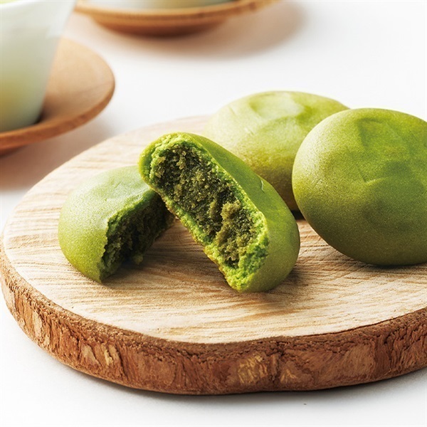 【八女濃香抹茶ミルク饅頭 露誉】抹茶乳菓あん(国内製造)(エンドウ豆、砂糖、マルトース、練乳、水飴、桑葉粉末)、小麦粉、砂糖、バター、生クリーム、脱脂粉乳、練乳、蜂蜜、抹茶/トレハロース、膨張剤、香料、クチナシ色素、(一部に小麦、乳成分、卵を含む)